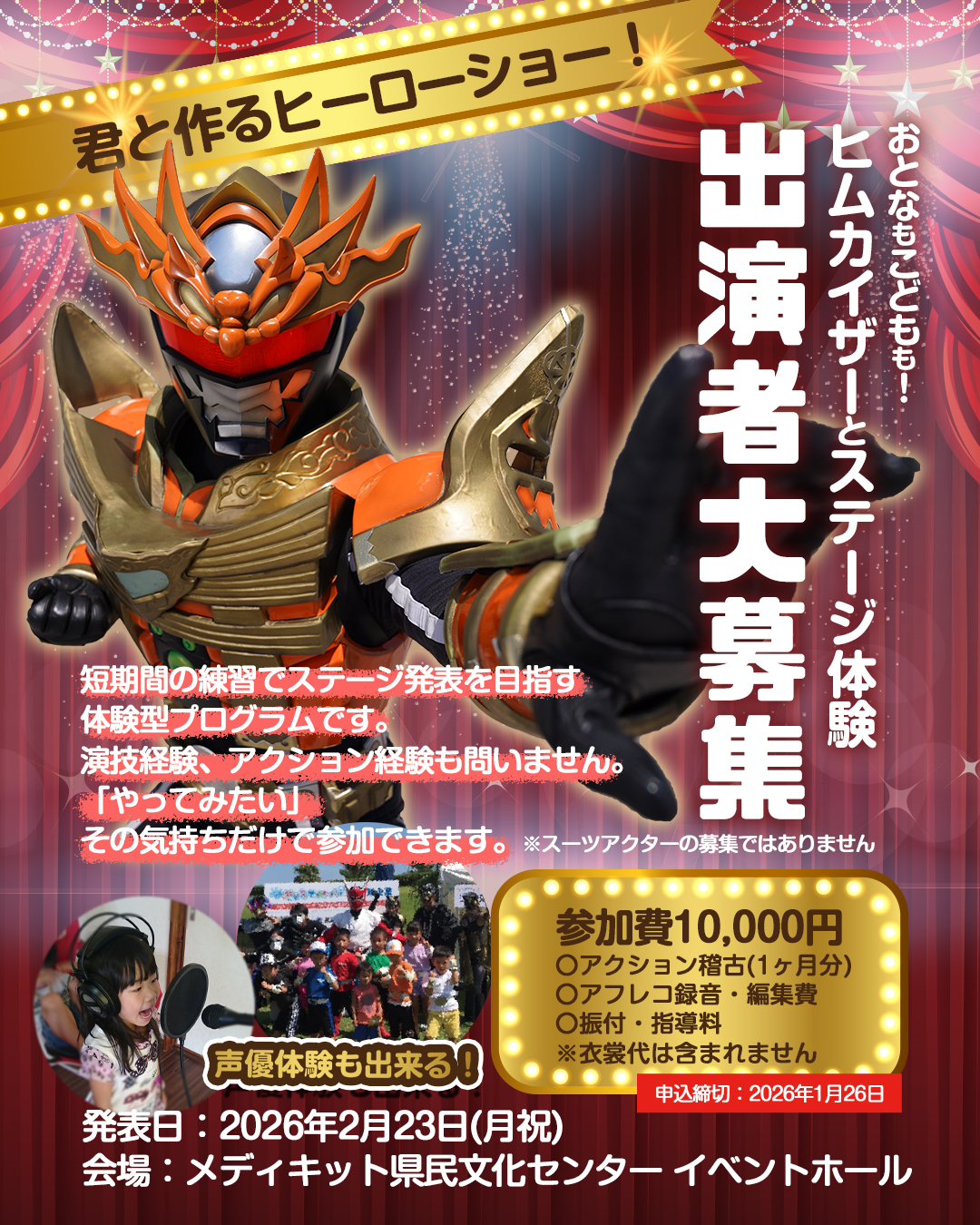 これはスーツアクター募集ではありません。出演・体験を楽しむ企画となります。